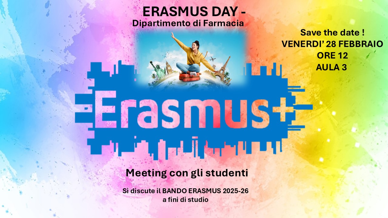 Si avvisano gli studenti interessati che VENERDI' 28 FEBBRAIO alle ore 12 in aula 3, si terrà un incontro per discutere del BANDO ERASMUS 2025-26.